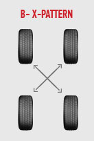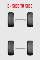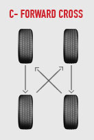 چرخش لاستیک از چه الگویی باید پیروی کند؟ شرکت(چرخ ورینگ) سه الگوی سنتی را که شامل همه خودروها(مجهز به لاستیک ها وچرخ های غیر هدایتی هستند واندازه وخم مساوی دارند.)می شوند مشخص کرده است.اولین الگو"چرخش به عقب" (شکل)A،دومی"چرخش به جلو"(شکلC)و سومی"الگوی X"(شکلB) می باشد. الگوی X میتواند به جایA یا C هم بکار برد.در گرایش جدید صنعت لاستیک وچرخ،دو الگوی چرخش لاستیک اضافه شده اند.الگوی"جلو به عقب"(شکل D)را ممکن است بتوان برای خودرو های مجهز به فرمانهای هدایتی هم اندازه ویا لاستیک های هدایتی بکار برد.یک الگوی"کنار به کنار"را میتوان برای خودروهای مجهز به لاستیک وفرمان های غیر هدایتی با اندازه های مختلف که روی محور جلو قرار دارد(نه در عقب)به کاربرد.اگر دو الگوی ذکر شده سایش یکدست را ایجاد نکنند،پایین آوردن،سوار کردن و دوباره بالانس کردن برای چرخ لاستیک ها ضروری خواهد بود.خودروهایی که از لاستیک ها وفرمانها ی(چرخ های)هدایتی هم اندازه یا از فرمانهای (چرخ های)با خمیدگی جلو وعقب مختلف و با لاستیک های هدایتی استفاده میکنند،نیاز به پایین آوردن،سوار کردن و دوباره بالانس کردن برای چرخش های لاستیک ها خواهند داشت.